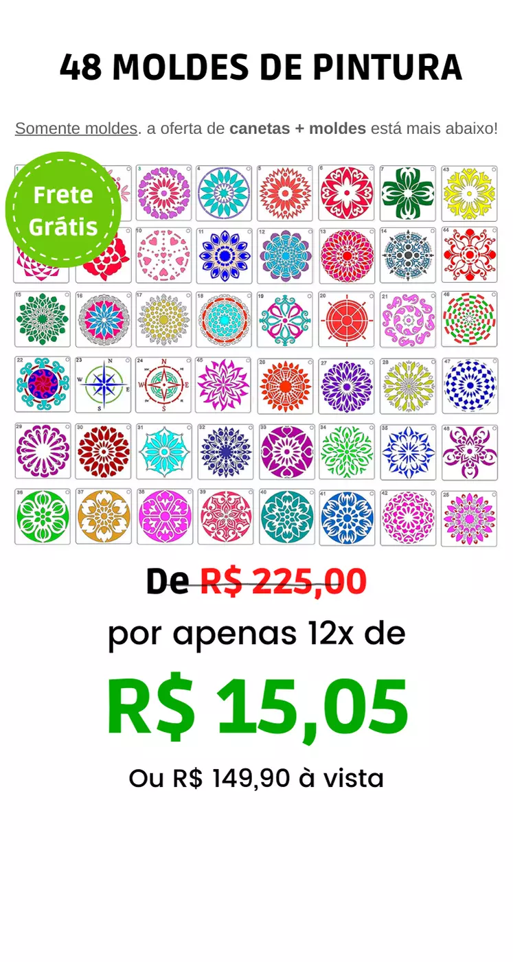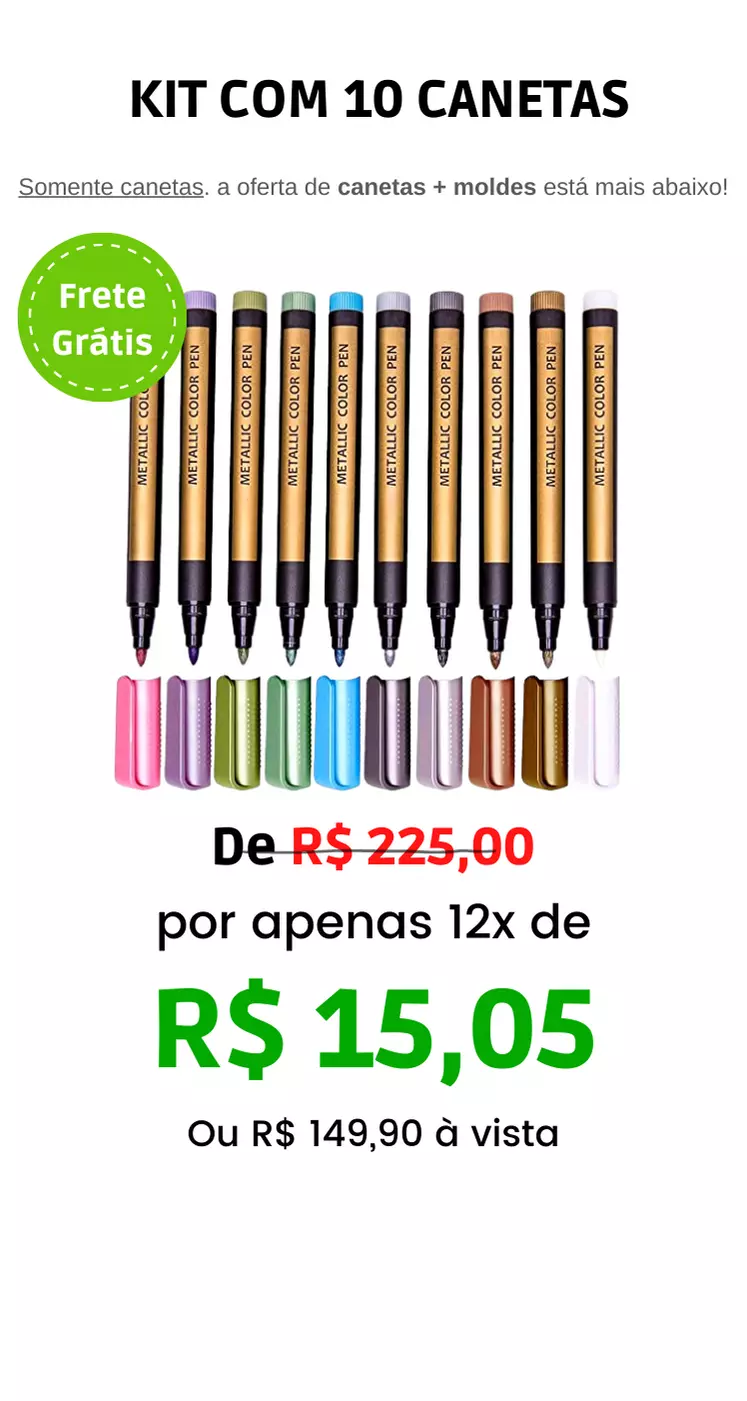 Você tem 3 opções: comprar somente as canetas, somente moldes ou comprar os 2 juntos com desconto adicional.Escolha a Melhor Oferta Para Você